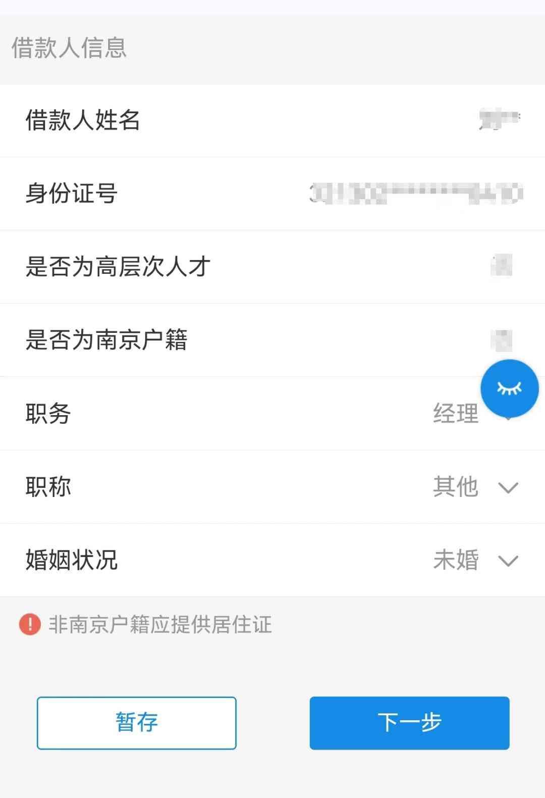 根据实际情况选择您的职务、职称,以及婚姻状况,确认无误后点击【下一步】。