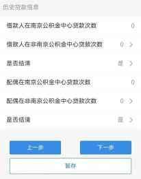 根据您家庭实际贷款情况选择非南京公积金贷款次数以及贷款是否结清(借款人和配偶已经办理了公积金贷款的,在未还清贷款本息之前,任何一方均不能再次办理公积金贷款)。确认无误后点击【下一步】。