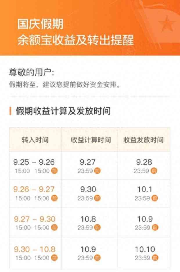 以余额宝平台的基金为例,在9月27日下午3点之前转入,收益计算时间从9月30日开始,而如果在9月27日下午3点之后转入,则收益计算时间要从10月8日开始。