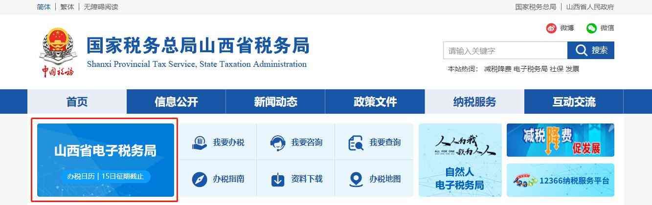 山西税务局官网截图