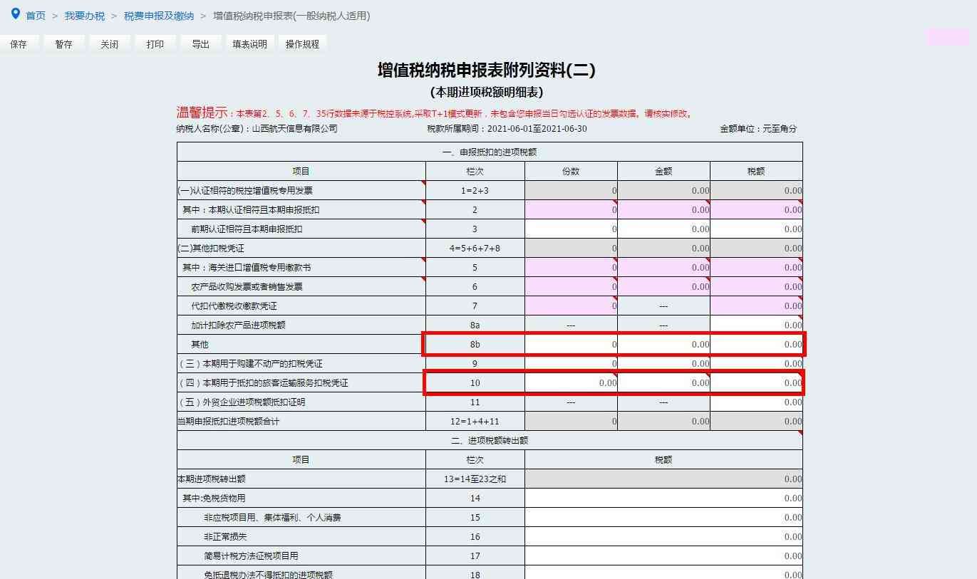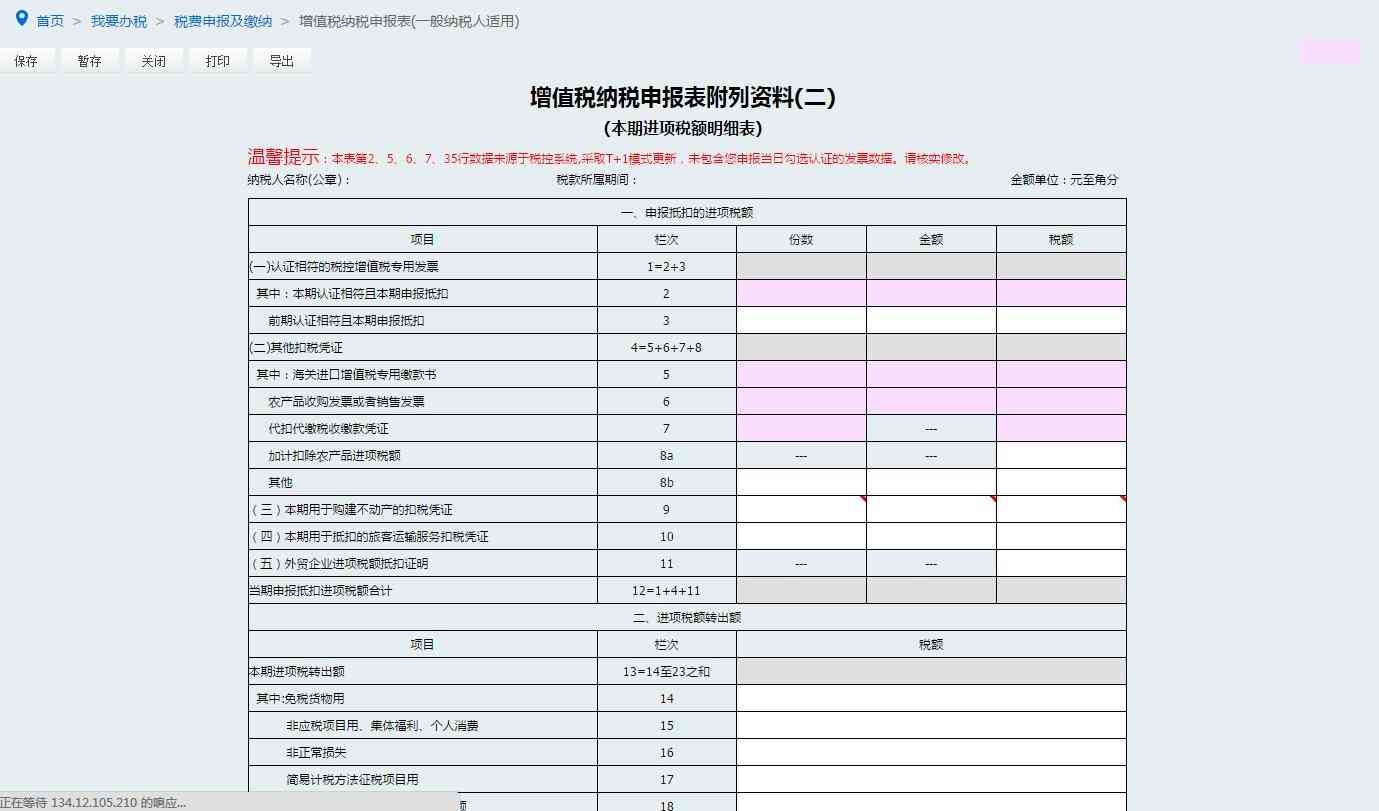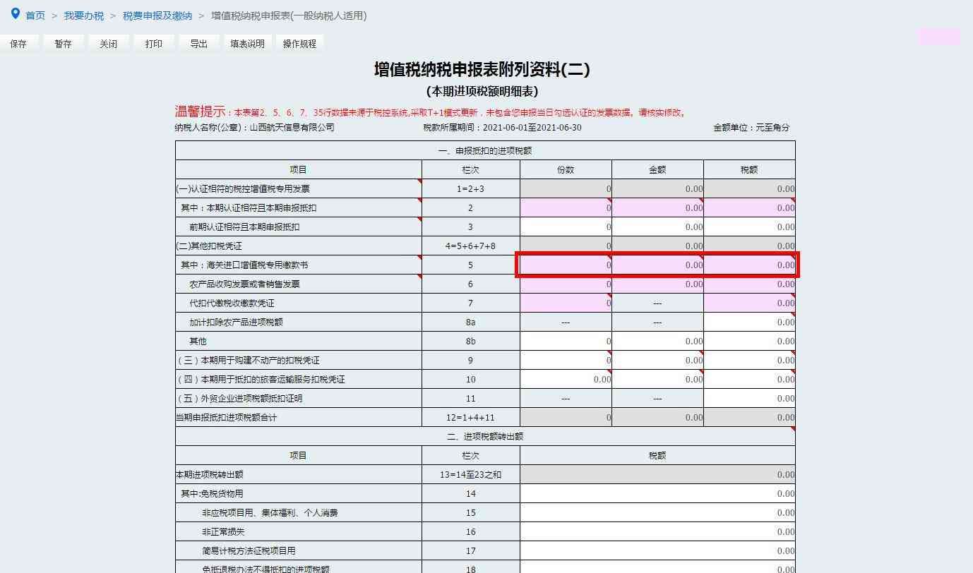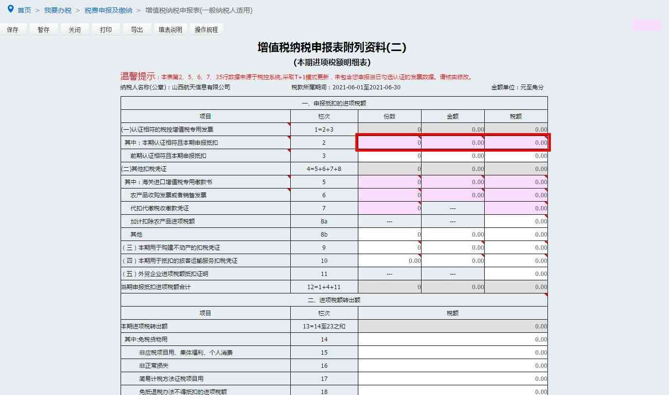 3.核实并修改电子税务局自动提取的第2栏“本期认证且本期申报抵扣”增值税专用发票“份数”“金额”“税额”栏次数据。