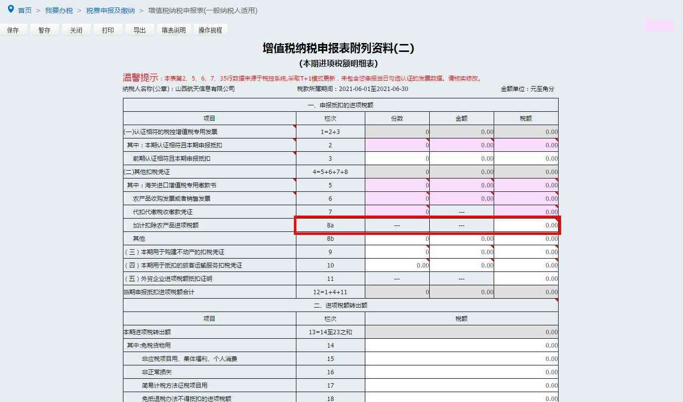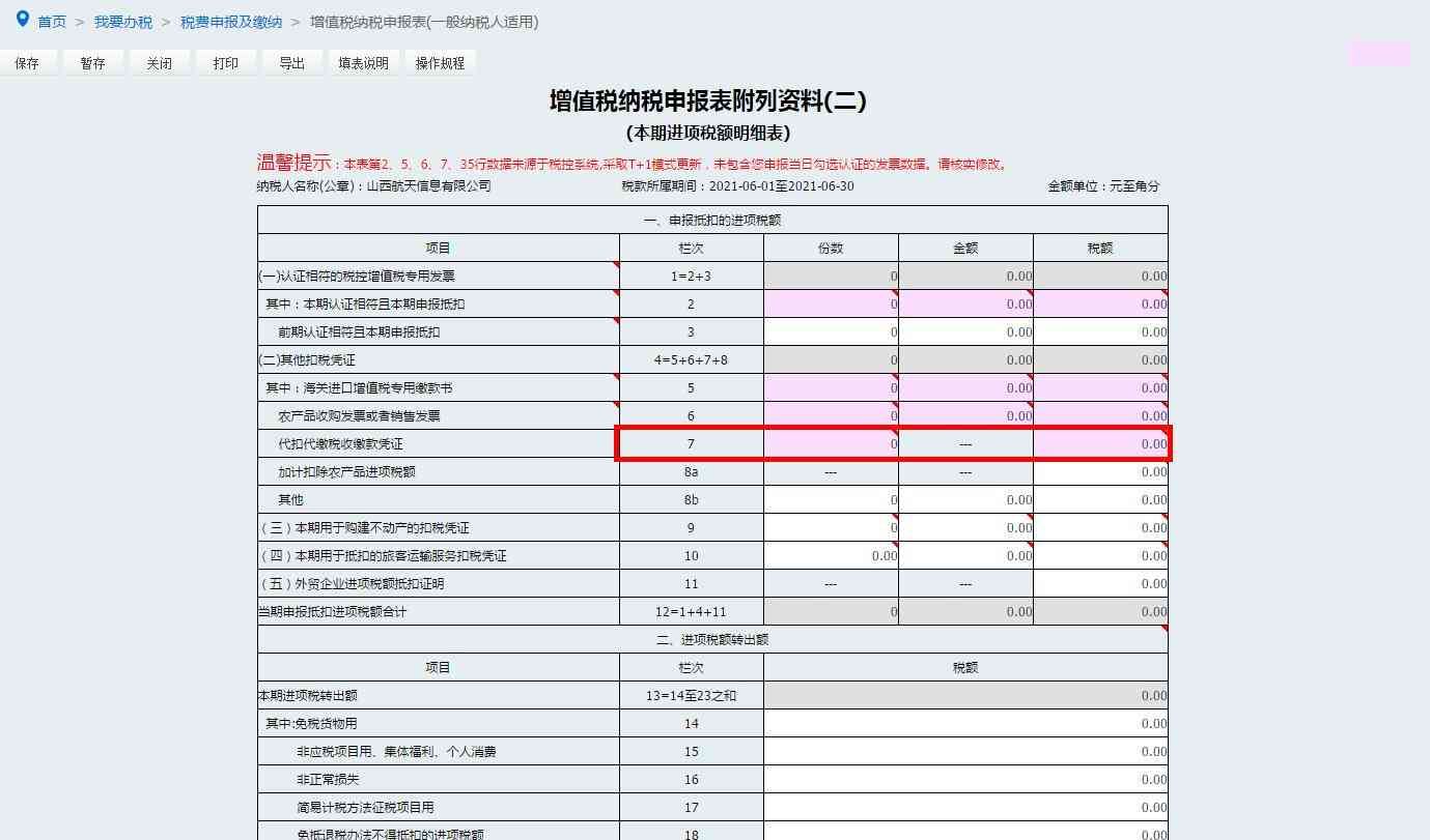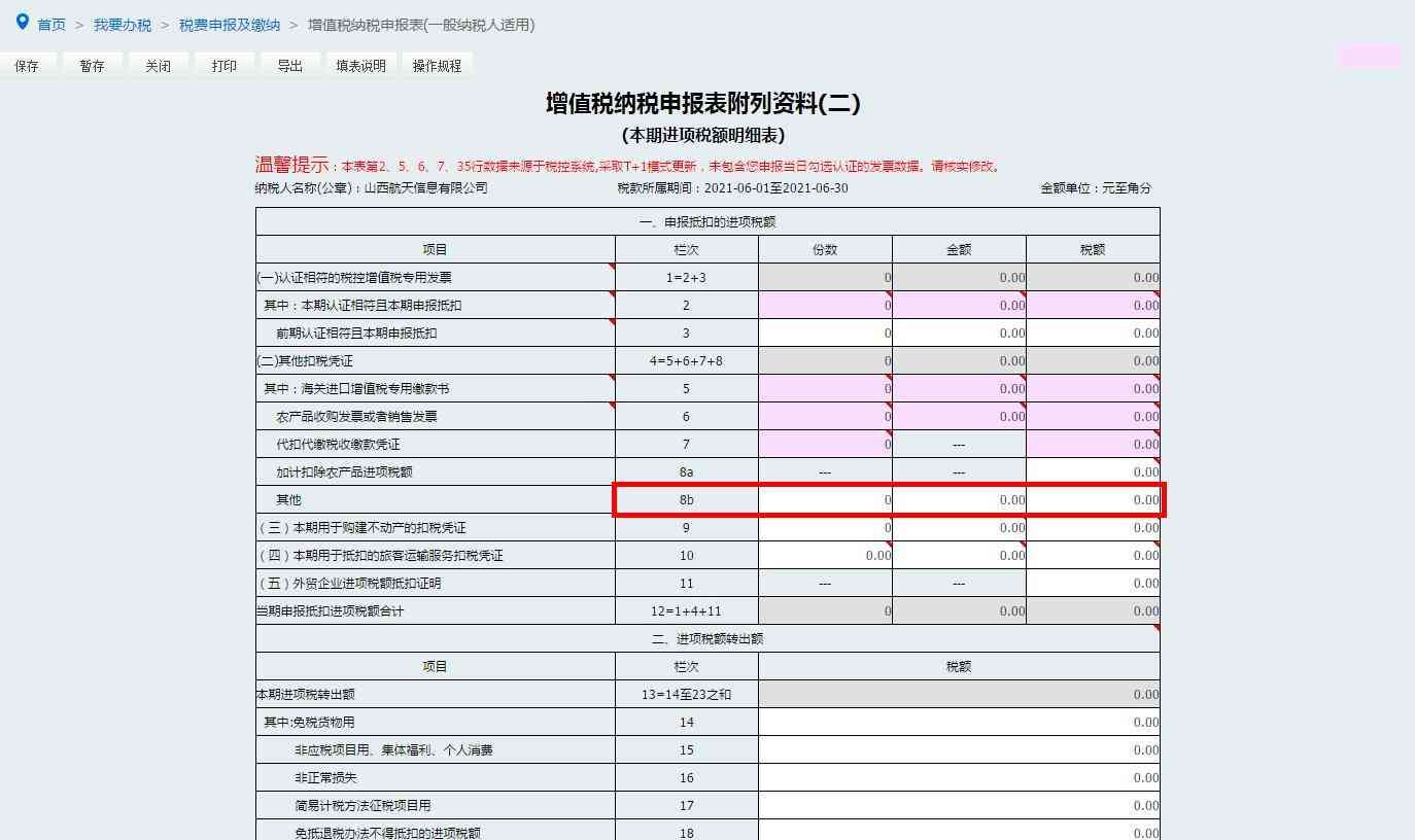 3.核实并修改电子税务局自动提取的第2栏“本期认证且本期申报抵扣”增值税专用发票“份数”“金额”“税额”栏次数据。