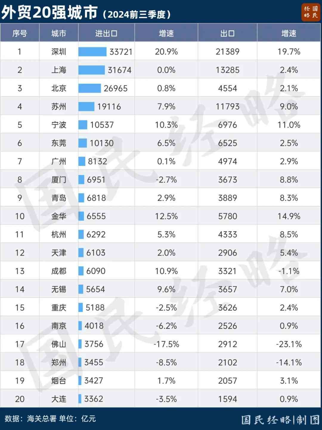 深圳是中国外贸第一大市,苏州则是外贸第三大市,两城的出口增速双双大幅跑赢全国。