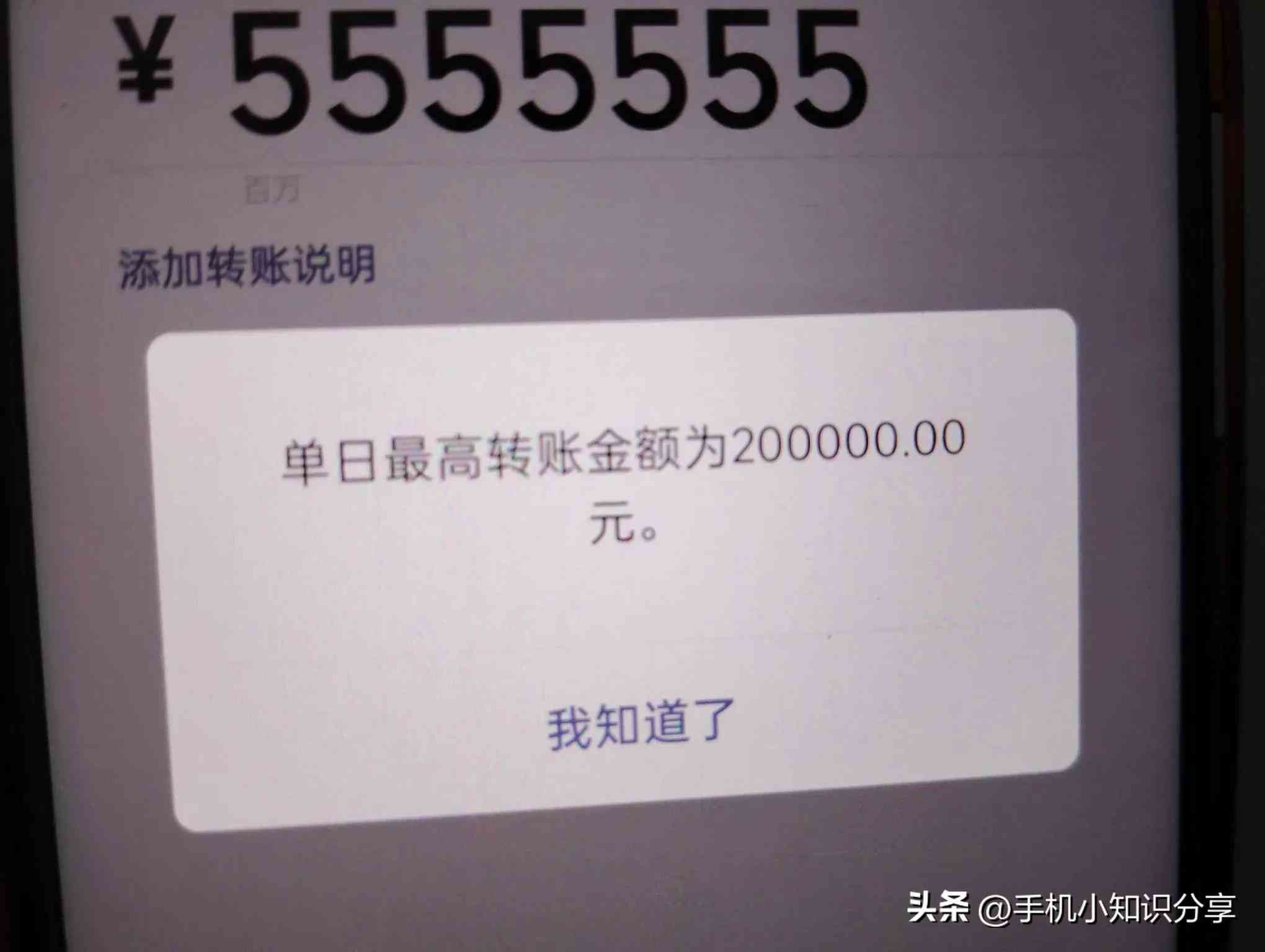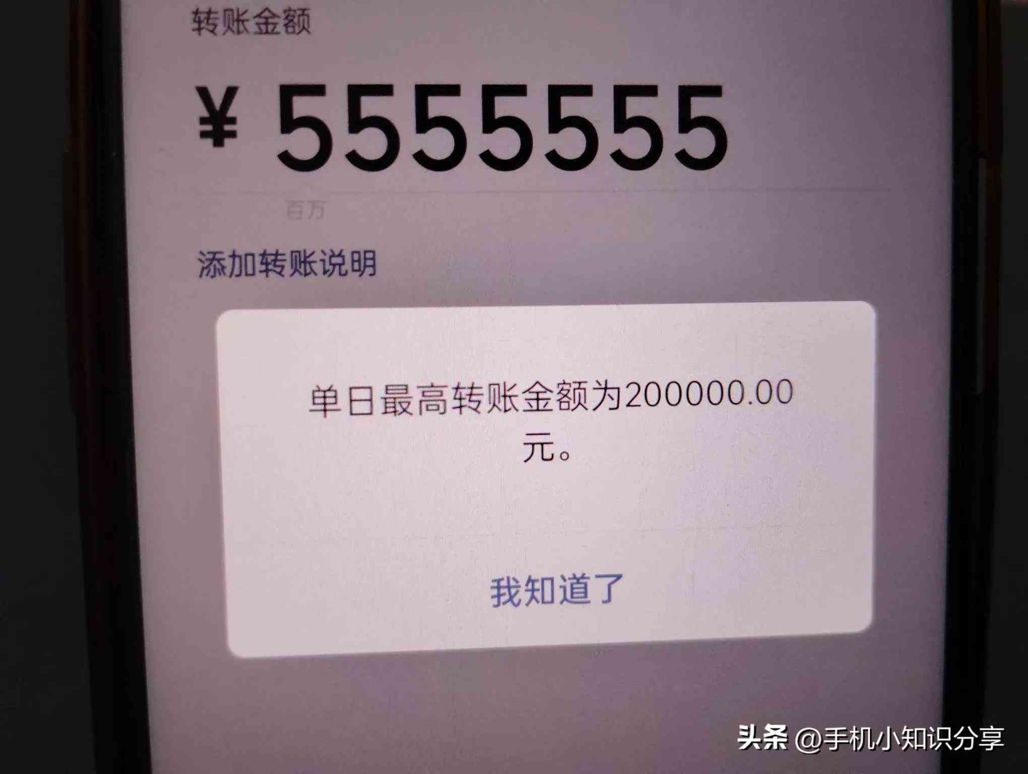 现在我们可知,银行卡单笔最高转账金额为 5 元,(如上图所示)