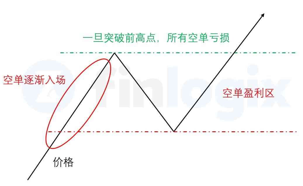 以逼空为例,当空头无法阻止价格上涨,扛不住亏损平仓回补时,多头力量就趁势发力,推动价格进一步上涨。而这种转折点往往出现在空头仓位建立时的前高点或重要阻力位附近。
