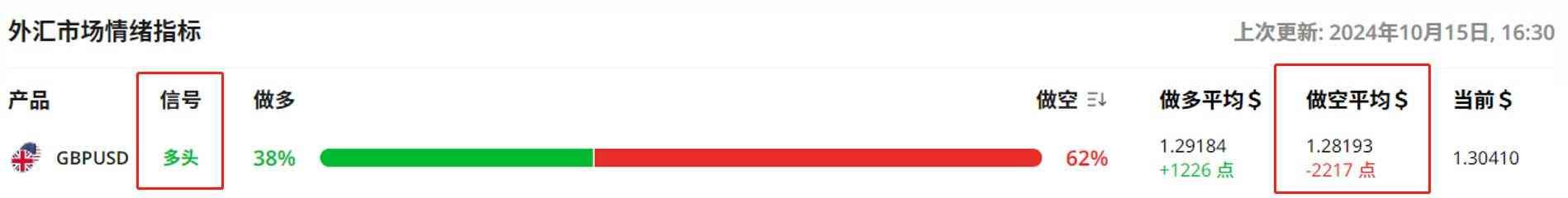 让我们以英镑兑美元为例,多空比例释放了看涨的信号,同时空单的平均亏损点数达到了2217点。这意味着空头持仓者承受了巨大的压力,越来越可能被迫认亏离场,从而为英镑兑美元的上涨提供更大的动能。