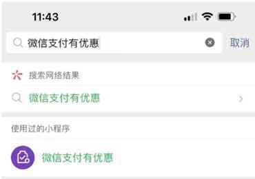 第一步:微信搜索“微信支付有优惠”,点进小程序
