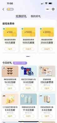 金币可以在右上角【我的好礼】里查看可以兑换的礼品,可以领取提现免费券,也可以兑换低价购商品。其中,提现免费额度券共3种:1、1、2元,每张券每周可兑换一次,也就是说一次最多可领31元免费额度。