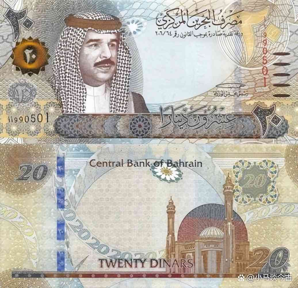 巴林,同样是中东土豪国之一,位置就在卡塔尔旁边,不过与其他中东国家不一样的是,巴林目前国内经济并不依赖石油,其一早就注重经济多元化发展,积极进行产业结构调整和扩大对外开放。目前巴林铝业较发达,铝制品是巴林的重要出口产品,此外金融以及旅游业比较发达,巴林也被世界银行认定是高收入经济体。巴林面值最高的货币与科威特一样,也是20元,其货币亦称为第纳尔。