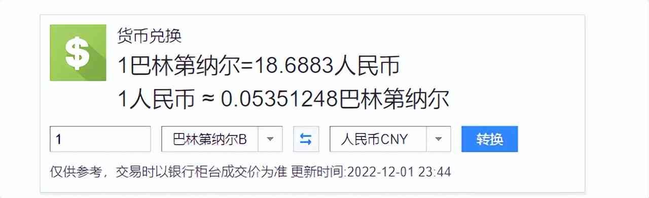 按照今日的汇率计算,1巴林第纳尔约等于18.7元人民币,是美元的2倍以上,不得说土豪就是土豪。