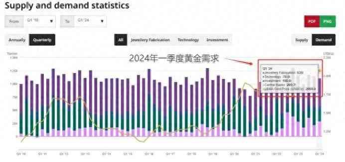 2022年10月至今。一年多时间里,黄金突破2011年9月和2020年8月这两个最高和次高点,刷新历史记录。主要因为欧美国家的通胀率急剧升高,大量资金涌入黄金市场寻求避险和保值。