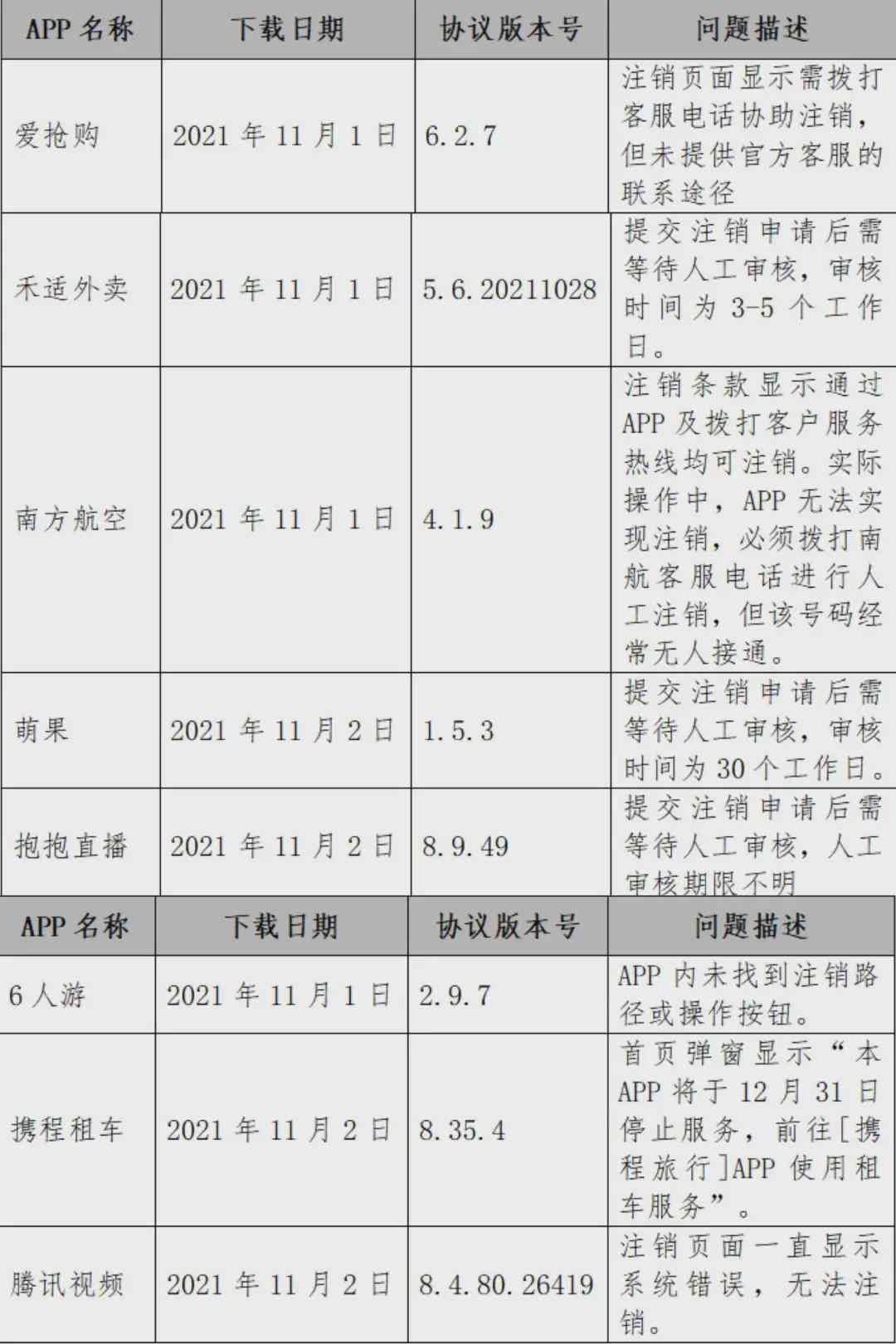 让用户更糟心的情况如人工审核无人受理、无法通过APP直接注销也出现在中消协的报告中,有网友看到名单表示:这只是冰山一角。
