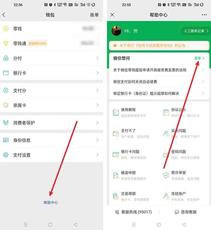 2、接着在钱包中点击底部的【帮助中心】,然后在【猜你想问】的右侧点击【更多】,如果没有显示更多,请先点击两次【换一换】即可;