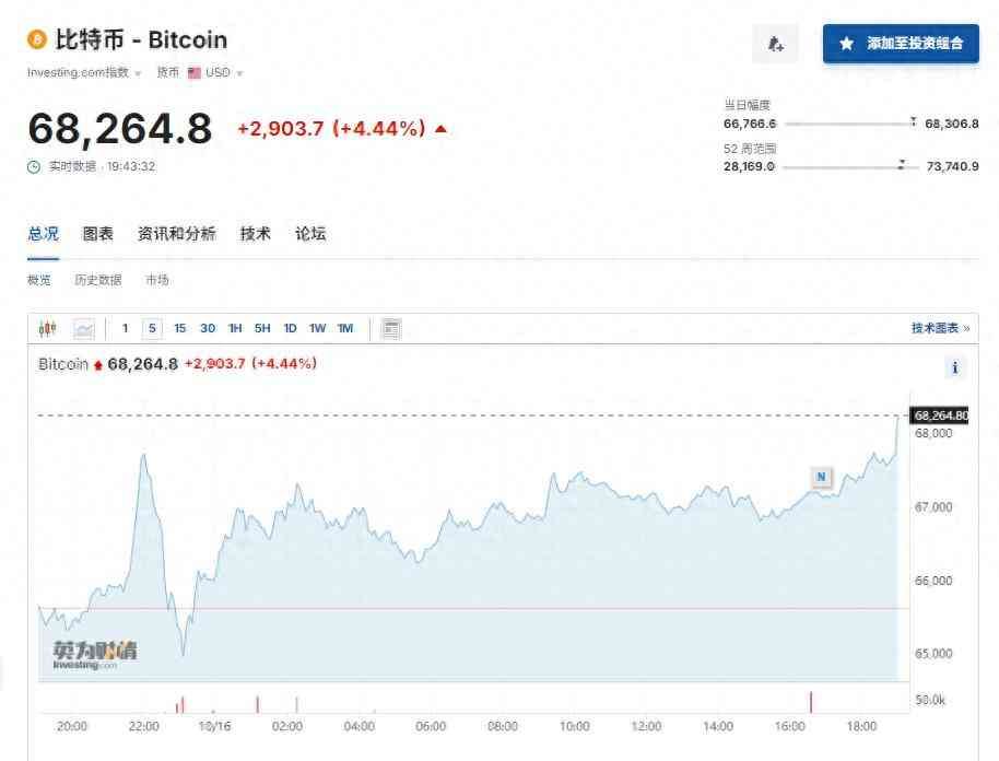其中,比特币在盘中一度涨至6.78万美元,随后又在一个小时内暴跌近3美元,紧接着又在半个小时内收复大部分失地。以太坊盘中最高触及2682美元,也跟随比特币在一个小时内跳水超5%,最低触及2540美元。截至北京时间16日19时45分左右,比特币价格报6.82万美元,24小时内上涨超4%,以太坊报2625美元,上涨1.63%。