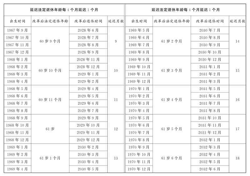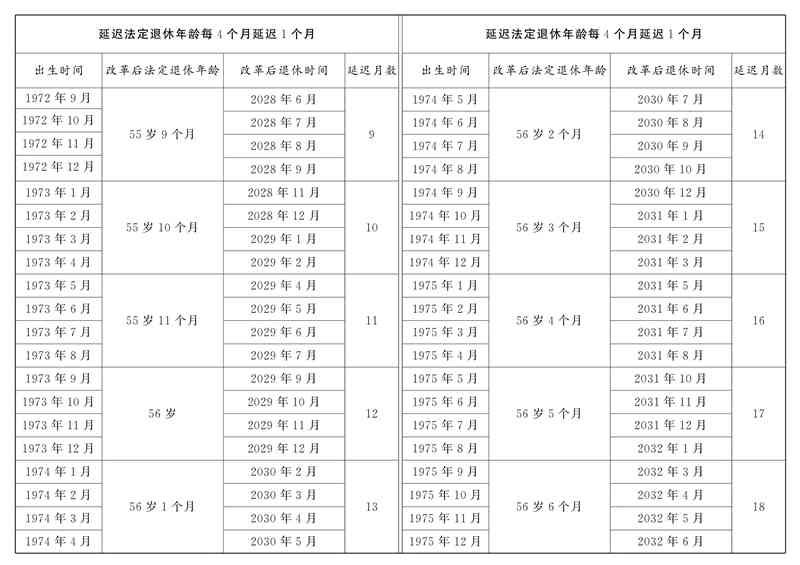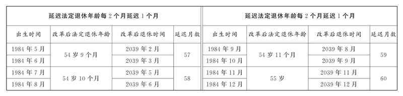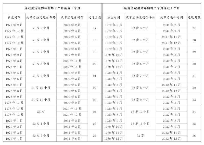 3、1983年出生的女工人退休年龄不同月份出生,延迟月数不一样。其中1983年1月至2月出生的,退休时间为2037年2月和3月,按照每2个月延迟1个月以此类推。