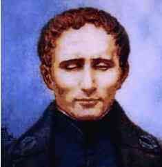 因为法国国王路易.布莱叶3岁时在切割皮革时因刀子刺伤眼睛失明。路易▪布莱叶1819年进入巴黎国立盲童学校求学,1826年后在该校任教。经过自己的探索,1829年发明了6个圆点作为一个盲文符号设计单位。