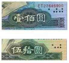 于是,1980年版第四套人民币上,1元、2元、5元、10元券在左下角分别加印1个、2个(竖列)、2个(斜列)、4个小黑点,50元、1元券在右下角分别加印5个、7个小黑点。