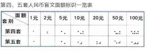 第四套人民币盲文面额标识