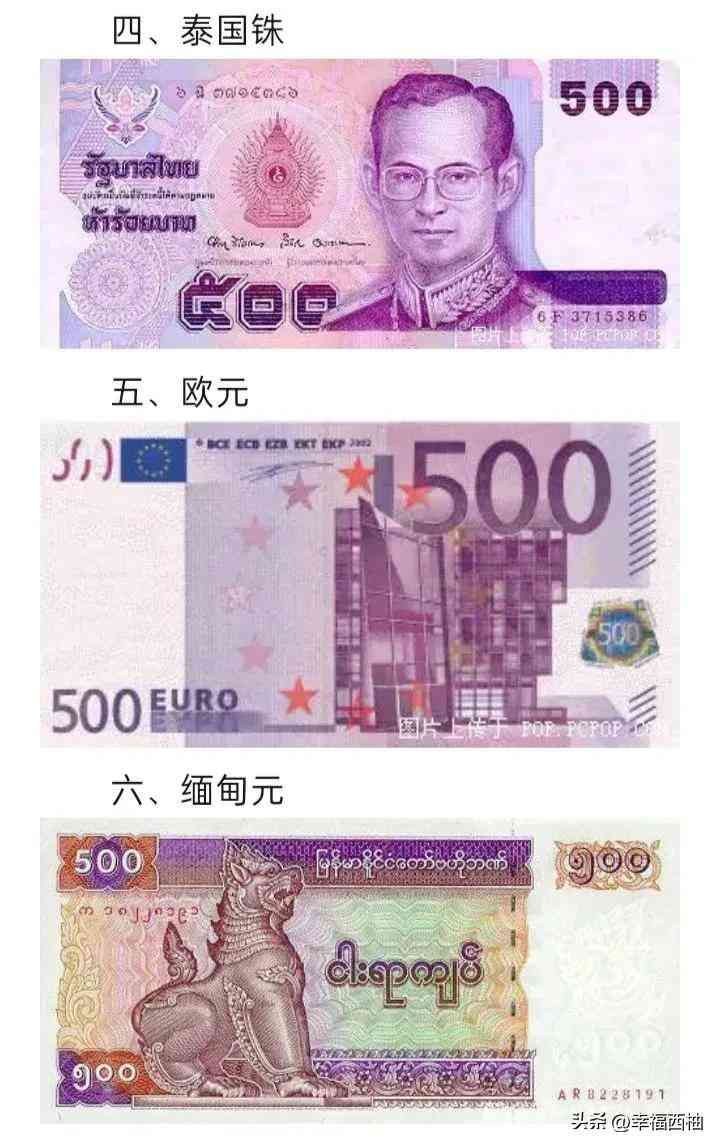 人民币(CNY):中国的法定货币,单位为元,符号为 “¥”。人民币有着悠久的历史,经历了多次货币制度改革与演变。如今,随着中国经济的崛起,人民币在国际经济舞台上的地位日益提升,逐步走向国际化,在跨境贸易结算、金融投资等领域发挥着越来越重要的作用。它的纸币面额有 1 元、50 元、20 元、10 元、5 元、1 元等,硬币则有 1 元、5 角、1 角等。人民币的设计融合了中国的历史文化元素,如第五套人民币百元纸币上的毛泽东头像、人民大会堂图案等,展现了中国的政治与建筑风貌。日元(JPY):日本的货币单位为日元,符号 “¥”。日元是世界主要货币之一,具有较高的国际化程度。日本经济的发达以及在国际贸易、金融领域的广泛参与,使得日元在国际外汇市场上有着重要影响力。日元的纸币面额有 1 日元、5 日元、2 日元(较为少见)、1 日元等,硬币面额有 5 日元、1 日元、50 日元、10 日元、5 日元、1 日元等。日元纸币上的图案多为日本的历史人物、文化景观等,例如 1 日元上的福泽谕吉,他是日本近代著名的思想家、教育家,对日本的现代化进程产生了深远影响。韩元(KRW):韩国的货币称为韩元,货币符号 “₩”。韩国经济在过去几十年中取得了显著发展,韩元也在国际经济交往中逐渐被更多人所熟知。韩元的纸币面额有 5 韩元、1 韩元、5 韩元、1 韩元等,硬币有 5 韩元、1 韩元、50 韩元、10 韩元、5 韩元、1 韩元等。韩国纸币上的图案反映了韩国的历史文化和科技成就,如 1 韩元纸币上印有世宗大王像,世宗大王在位期间创造了谚文,对韩国文化的传承与发展有着极为重要的意义。印度卢比(INR):印度的法定货币是印度卢比,货币符号 “₹”。印度作为世界人口大国和新兴经济体,其货币在南亚地区以及与印度有广泛贸易往来的国家中有着重要地位。印度卢比的纸币面额有 2 卢比、5 卢比、2 卢比、1 卢比、50 卢比、20 卢比、10 卢比等,硬币面额有 10 卢比、5 卢比、2 卢比、1 卢比、50 派士、25 派士等(派士为印度卢比的辅币单位)。印度卢比上的图案体现了印度的宗教文化、历史遗迹等,如 1 卢比上印有圣雄甘地的头像,甘地是印度民族解放运动的领导人和印度国家大会党领袖,他倡导的非暴力抵抗运动对印度独立和解放事业产生了决定性影响。二、欧洲货币