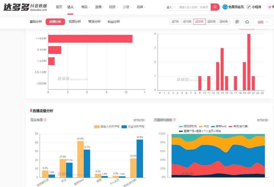 在计算直播间的音浪收入的时候,除了基础观众数量外,观众增长趋势也是评估直播间热度的一个重要指标。我们该如何去观看我们的直播间在线观众趋势呢?我们是可以通过专业的抖音数据分析工具来进行的: