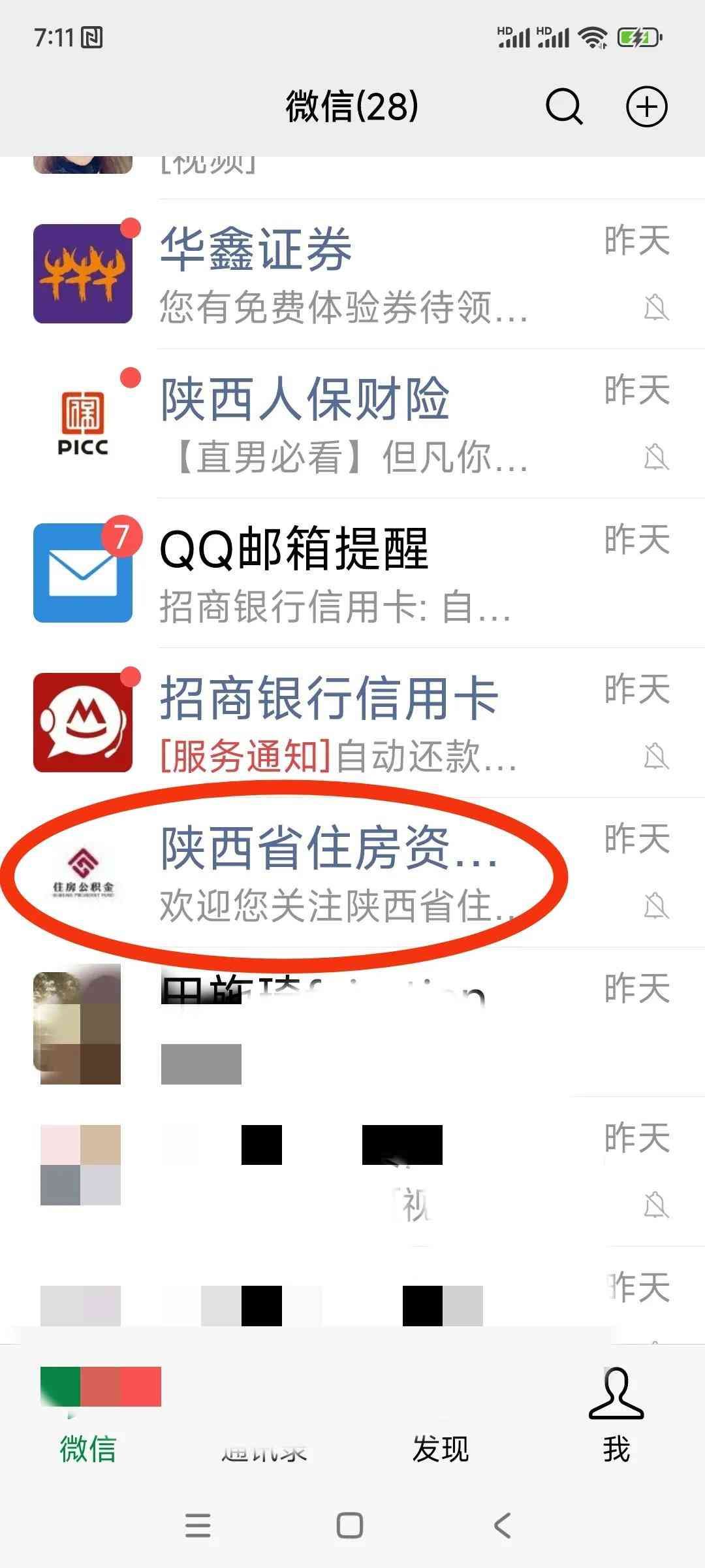 在柜台办理时,因为我的账户没有“封存”,当时没有办成。工作人员教给我一个方式,等账户(封存)后,不用跑路,在家就可以办,就是在微信上搜索某某省(或市)住房公积金中心,关注后生成图标,如下图红圈所示