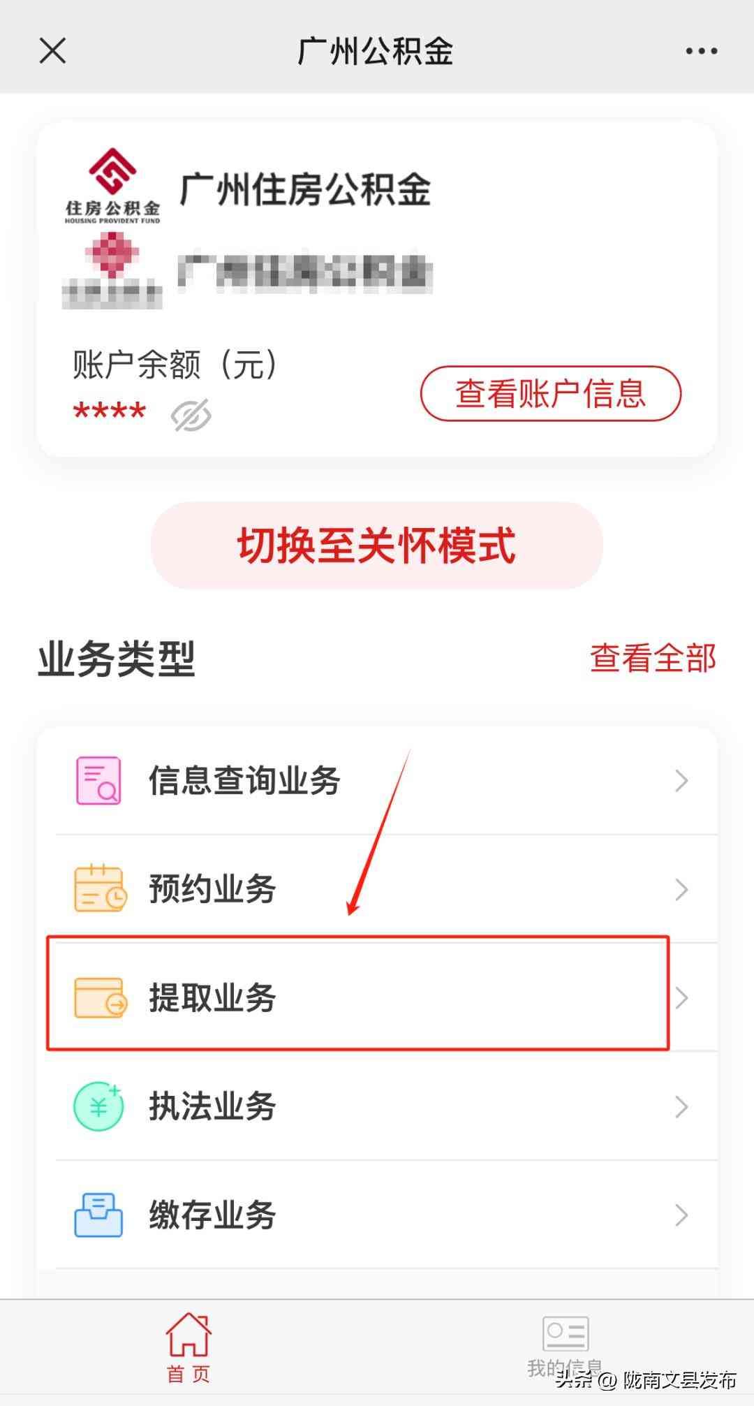 第二步:点击微信入口,登录广州住房公积金管理中心,点击【提取业务】。