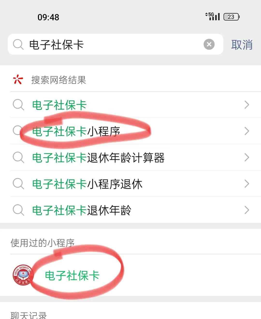 方法二:线上-微信搜索“电子社保卡”小程序