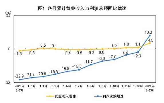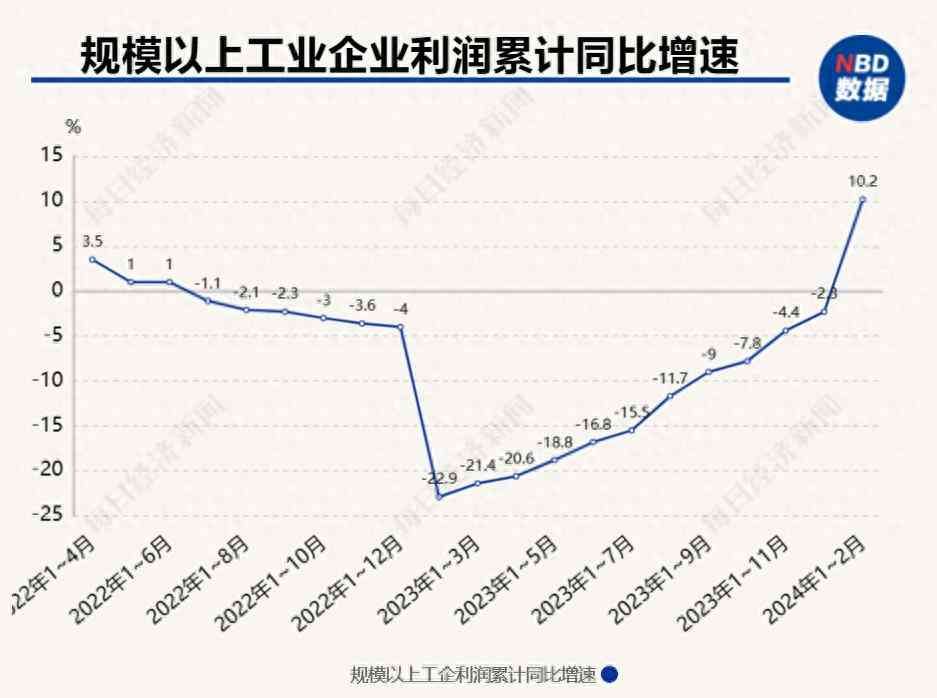 2024年1—2月份规模以上工业企业实现利润总额10.2%的同比增速,是自2022年7月以来一年半的时间里,累计同比增速首次实现正增长,且增幅达到了两位数。