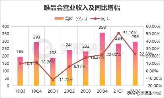 营业收入及同比增长率均采用趋势图的方式来表达,可以鲜明、形象地展示给用户所关心的公司营业收入在三年来的变化情况及增长情况,让人一目了然地掌握公司营业收入在此期间的总体趋势变化,为投资判断提供初步的依据。以唯品会近三年的同比增幅为例。