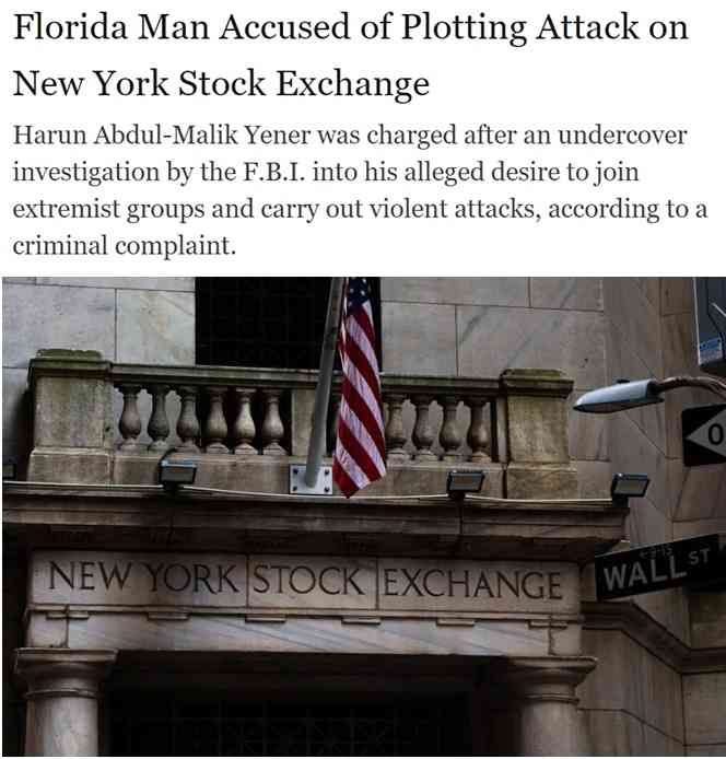 美国纽约证券交易所,拟炸毁纽约证券交易所!美国一名男子被逮捕