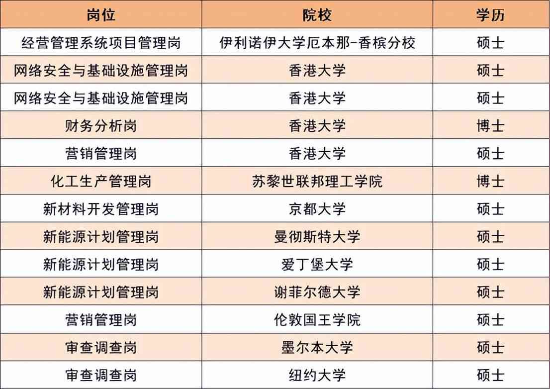 像美国的纽约大学、英国爱丁堡大学、新加坡国立大学、香港大学等等都是央国企招聘中经常出现的院校。