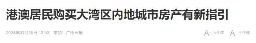 中国人民银行广东省分行推出了一个新政策,文件叫《港澳居民购买粤港澳大湾区内地城市房产结算支付便利化业务指引》,给买内地房子的港澳居民“提高了”汇款上限。