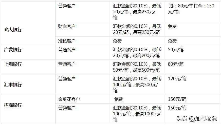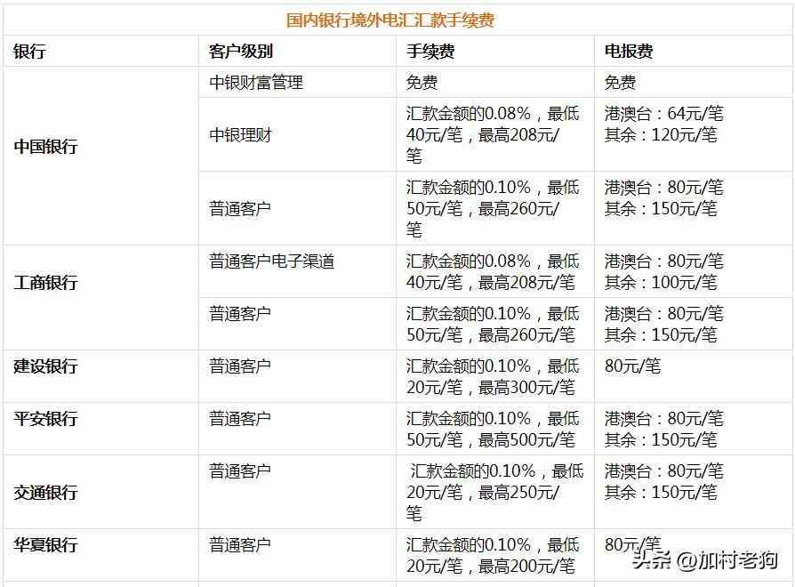 通过国内银行汇款到境外,需要交的费用除了手续费之外还有电报费(或称电讯费),具体的收费,可以参考以下表格: