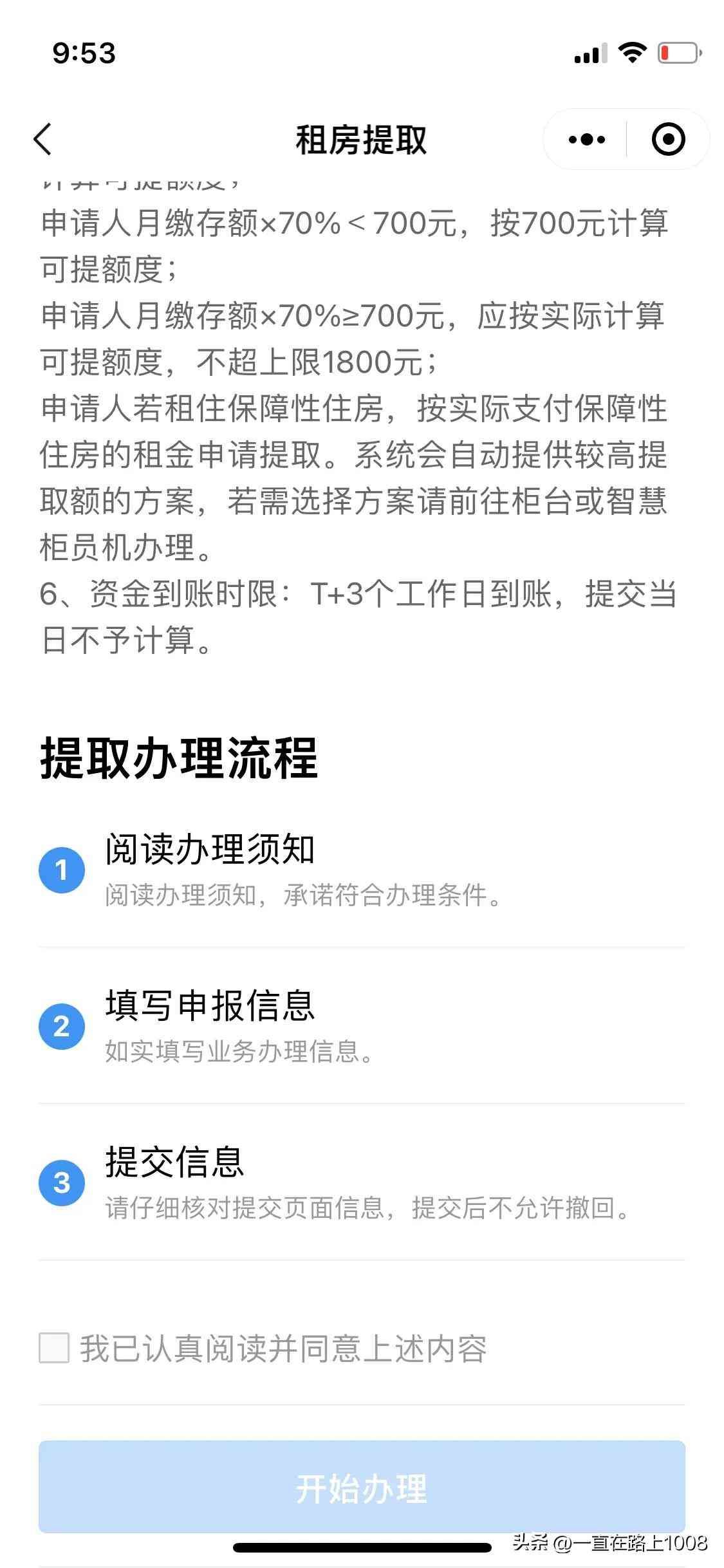 在下面选择租房提取,进去后如实填写123的信息,并且勾选同意后点击开始办理。
