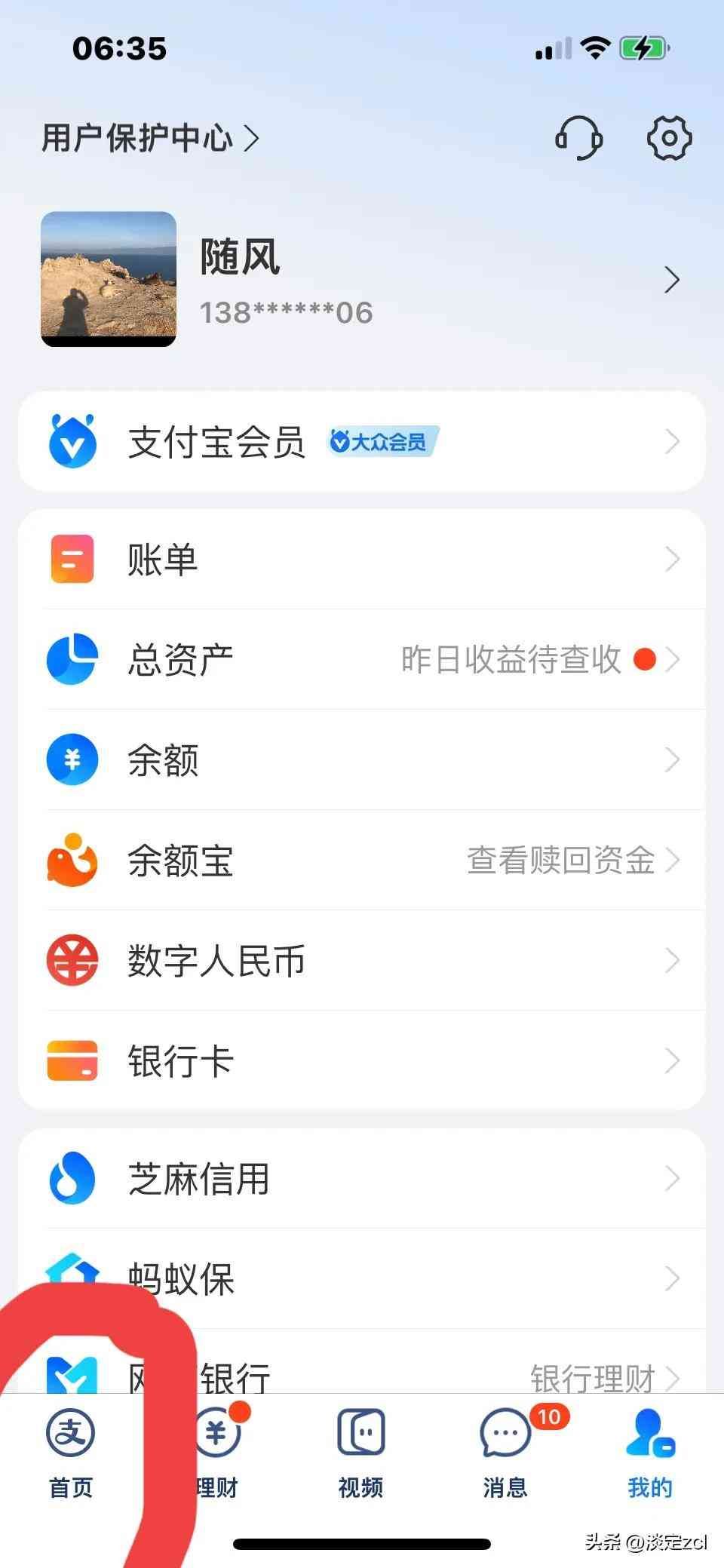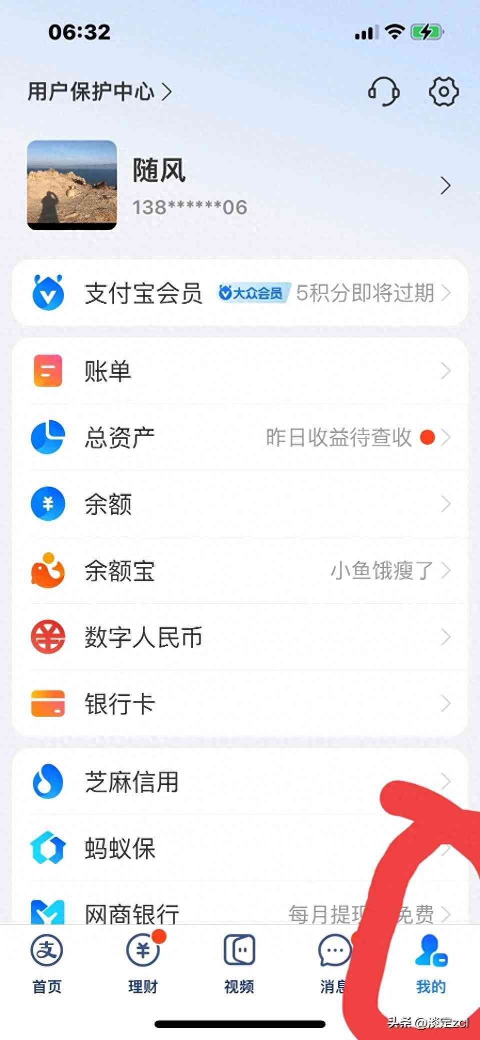 第一步:在支付宝上点击我的,如上图;