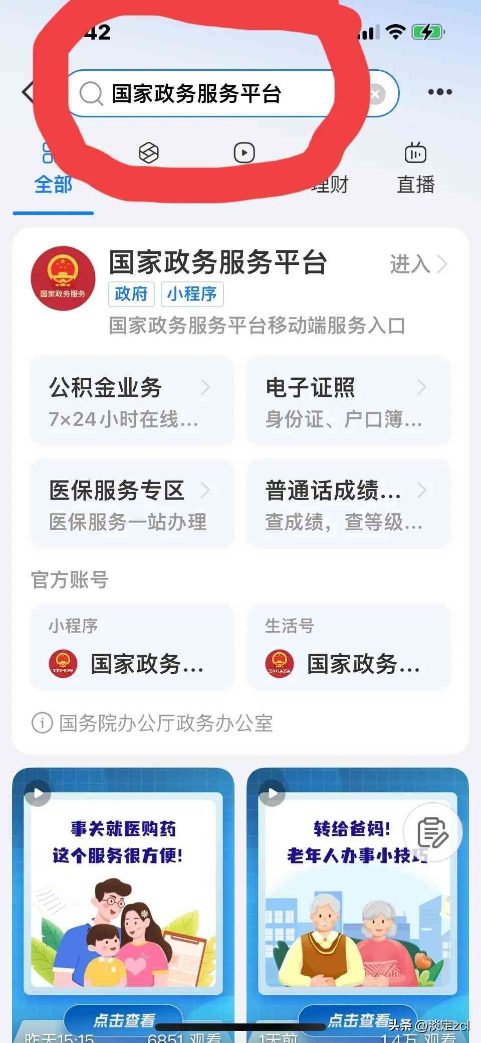 第三步:在出来的搜索框里输入国家政务服务平台,如上图;