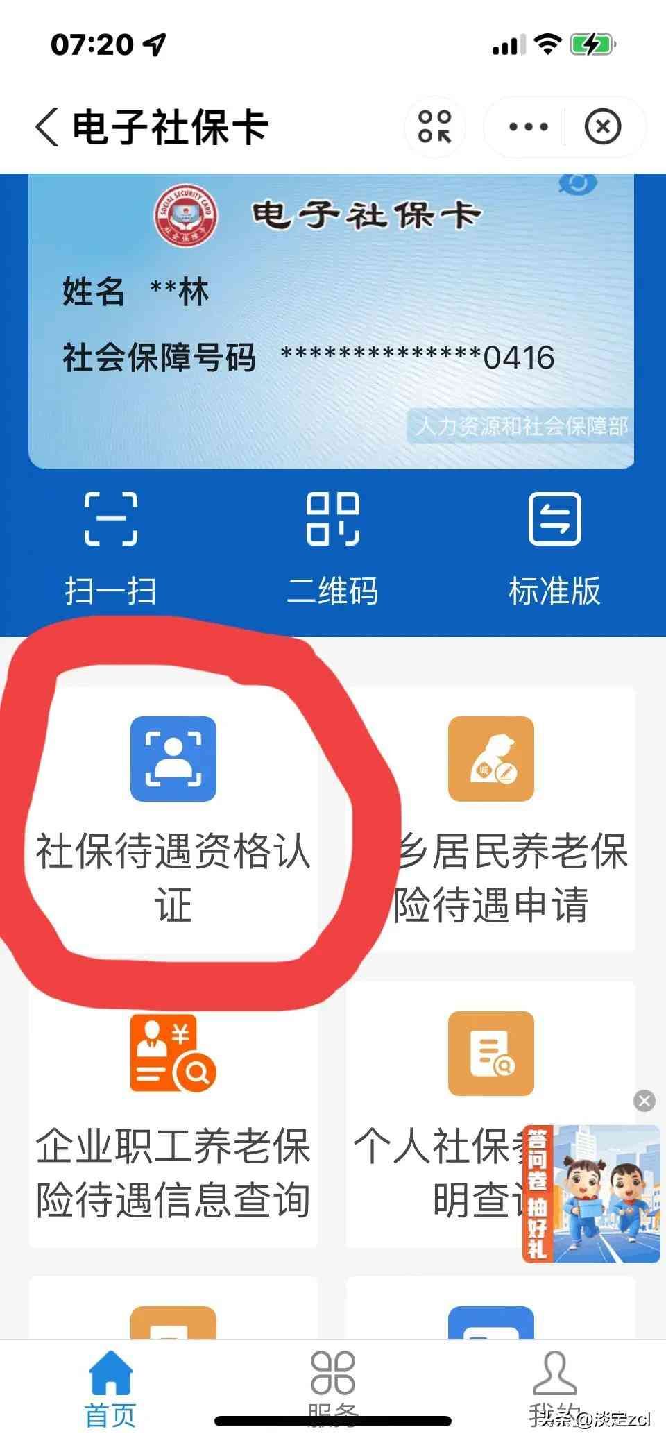 第六步:点击电子社保卡进行去申请。见上图;