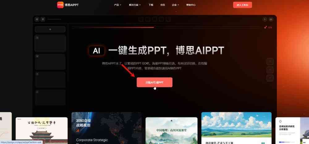 - AI生成PPT:打破传统创作,AI一键生成PPT,开启做PPT新方式。博思AIPPT将帮助你轻松地创建精美、专业的PPT,免费开始,探索AI智能带来的无限可能性!