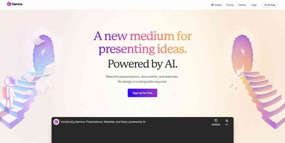 Gamma是一款革命性的AI驱动演示工具,最大的特点是能将简单的文本输入转换成专业的演示文稿。它采用了先进的AI技术来理解内容语境,自动生成合适的页面布局、配图和动画效果。用户只需输入大纲或关键点,Gamma就能智能构建完整的演示结构。特别值得一提的是其智能设计系统,能根据内容主题自动推荐配色方案和排版样式,确保视觉效果的专业性和一致性。此外,它还支持实时协作和版本控制,让团队协作变得更加顺畅。