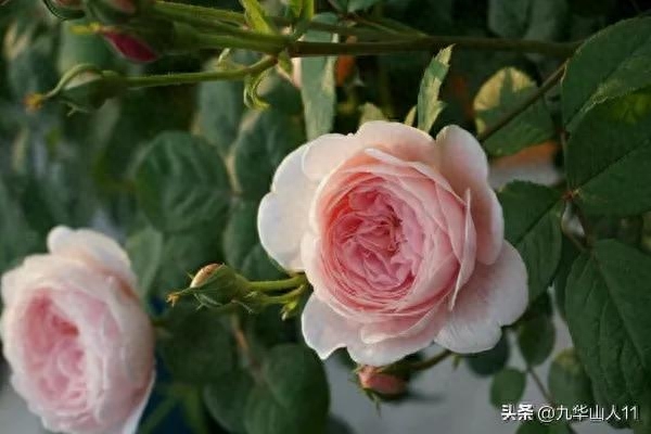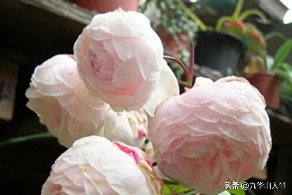 025.藤本玉玲珑:株高150厘米左右,花径5~7厘米,浅粉色微香,多季重复开花。藤本玉玲珑是中国的一款古老藤本月季品种,培育于1811年前,它的花朵颜色是浅粉色的,近乎白色,包子状花型,带有淡淡的香味。这款月季的开花性非常好,花量非常大,实际养护中为了集中营养,可摘去部分花苞,光照不足时花色变淡。它的叶片翠绿,抗病能力不错,但需注意通风良好,适合庭院、花园种植。