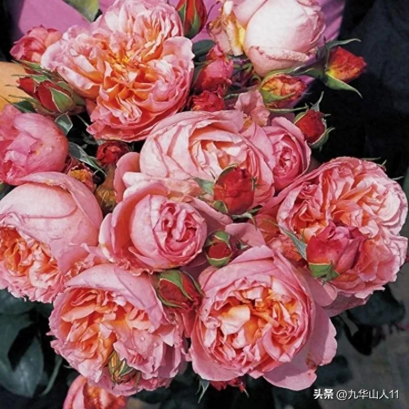 021.安德烈?杜加德:株高1~150厘米,花径8~10厘米,粉红色/橙色浓香,多季重复开花。安德烈?杜加德是法国多米尼克马萨德于27年培育推出的一款可藤可灌的月季品种,它的花朵是粉红色/橙色的,杯状花型,花瓣数量41枚以上,并带有浓郁的水果香味。它的植株直立,生长速度快,枝条比较柔软,非常有藤性,可以当灌木养,也可以当作小藤本来养,可以制作花篱、花墙。这款月季花色亮丽,以橙黄色为主,花香浓郁,单花期长;分枝性好,生长快速,对土壤要求不高,地栽通用土便可满足其生长需要,抗病能力强,花朵大,多头簇状群开,花量大,可庭院地栽,也可盆栽。