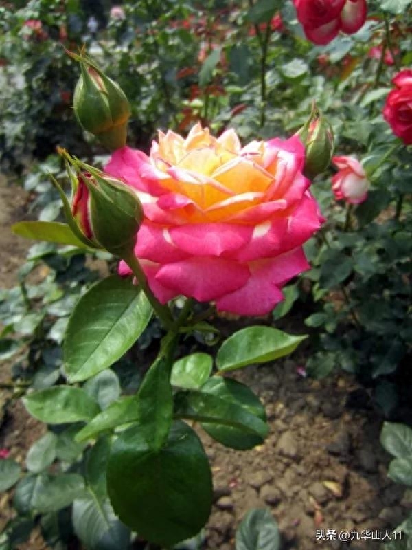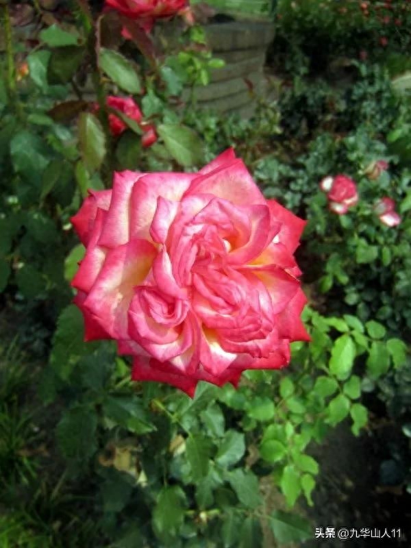 024.骑士精神/花魂:株高2厘米,花径10~14厘米,红黄混色淡香,多季重复开花。骑士精神是新西兰于1997年培育推出的一款藤本月季品种,它的花朵是红色与黄色的复合,高心杯状花型,淡香或无香。骑士精神这款月季生长比较强健,抗病能力强,一般情况下不会出现病虫害,花朵大,最大可达14厘米。耐寒性强,花色特别,它的花瓣正面是红色,背面为黄色,但又不是相互对照;大多单头开花,花朵后期花色会变淡,常用于园林绿化,庭院、花园种植,或当作大花灌木来养。