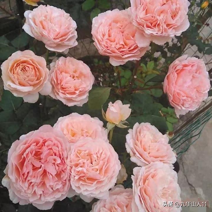 028.摩纳哥夏琳王妃/浪漫俳句/芳香俳句:株高1~150厘米,花径11~15厘米,杏粉色强香,多季重复开花。摩纳哥夏琳王妃是法国梅兰于2014年培育推出的一款可藤可灌的月季品种,它的花朵颜色是杏粉色的,花色会随气温变化,杯状花型,花瓣数量68枚,呈褶皱状,并带有强烈的古典百叶蔷薇的香味。它的原名叫浪漫俳句或芳香俳句,2014年被摩纳哥王室看中后才被用摩纳哥夏琳王妃的名字重新命名的,它一般株高在150厘米左右,如果地栽任其自然生长不加控制,可长到3厘米,如果当灌木或切花来养,可通过修剪控制在80~1厘米。它的植株非常粗壮,生长快,花色多变,从杏粉、粉色、浅粉色变化,花朵大,平均花径11厘米以上,养护得当春花轻松超过15厘米;花瓣厚实硬挺,花色清爽优雅,大多数情况下多头开花,花量大,非常勤花。叶片深绿色,油亮有光泽,抗病能力强,耐雨淋,耐热耐晒,夏花会变小到7厘米左右,但不会严重变形。这款月季是梅兰的切花、庭院两用品种,花色多变,因为它独特的波浪边和符合时下流行的柔美色彩,在获得了13项国际大奖的同时,一举超过梅兰老牌名品伊芙伯爵。