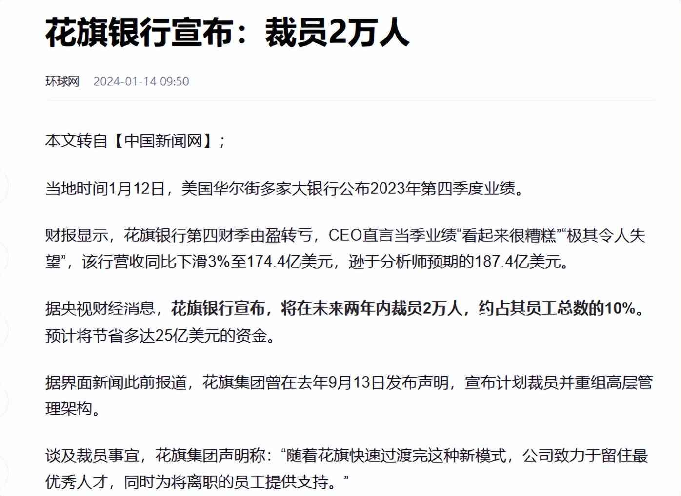 花旗银行大裁员