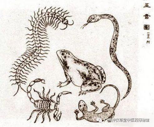 蝎子、蜈蚣、毒蛇、壁虎与蟾蜍。