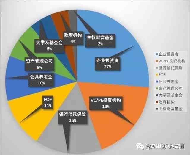 从这张图中,我们大致可以看到LP的主要类型包括企业投资者、VC/PE投资机构、政府机构、银行保险信托、资产管理公司、引导基金、FOF、大学及基金会、主权财富基金、家族基金、公共养老金等。然后我们再比较一下境内LP类型分布及境外LP类型分布:
