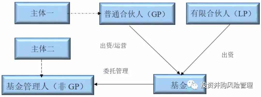 在基金另行聘请基金管理人进行管理的情况下。GP与基金管理人为两个不同的法律主体,各自拥有不同的法律地位,如下图: