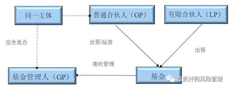 在GP自行担任基金管理人的情况下,GP与基金管理人为同一个法律主体,存在竞合关系。此时,GP主体=普通合伙人主体=基金管理人主体,如下图: