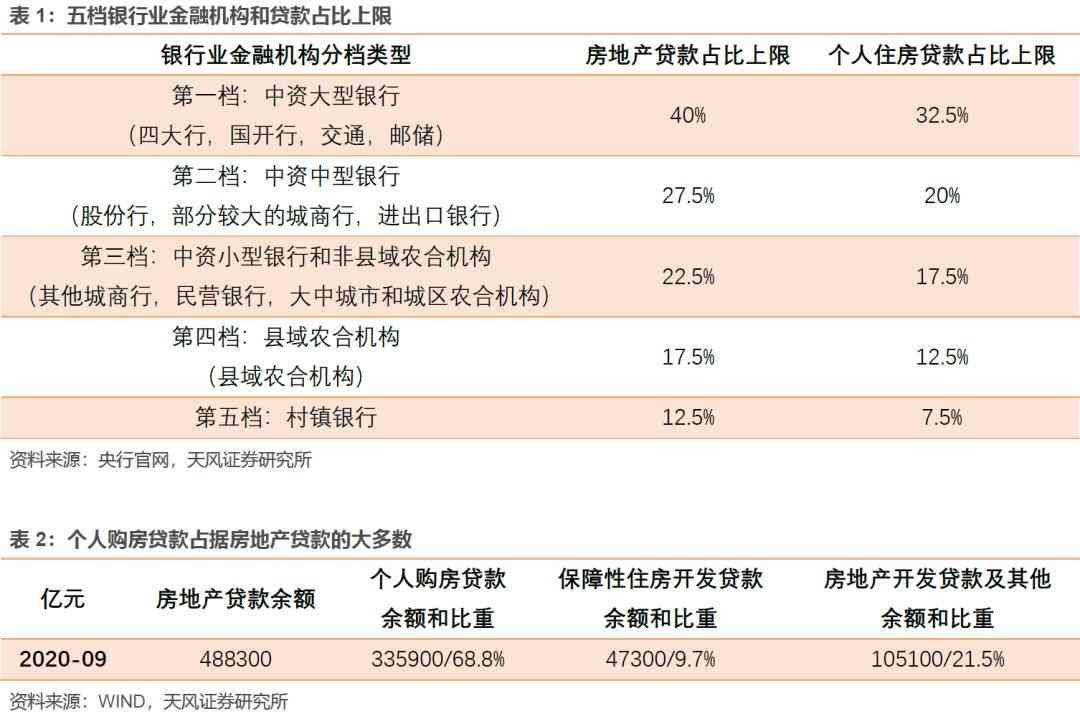 2020年12月31日,人民银行、银保监会发布《关于建立银行业金融机构房地产贷款集中度管理制度的通知》(下称《通知》),决定建立银行业金融机构房地产贷款集中度管理制度,分档设置房地产贷款余额占比上限和个人住房贷款余额占比上限。通知自2021年1月1日起实施。同时对占比超标的银行设置2年或4年调整过渡期。