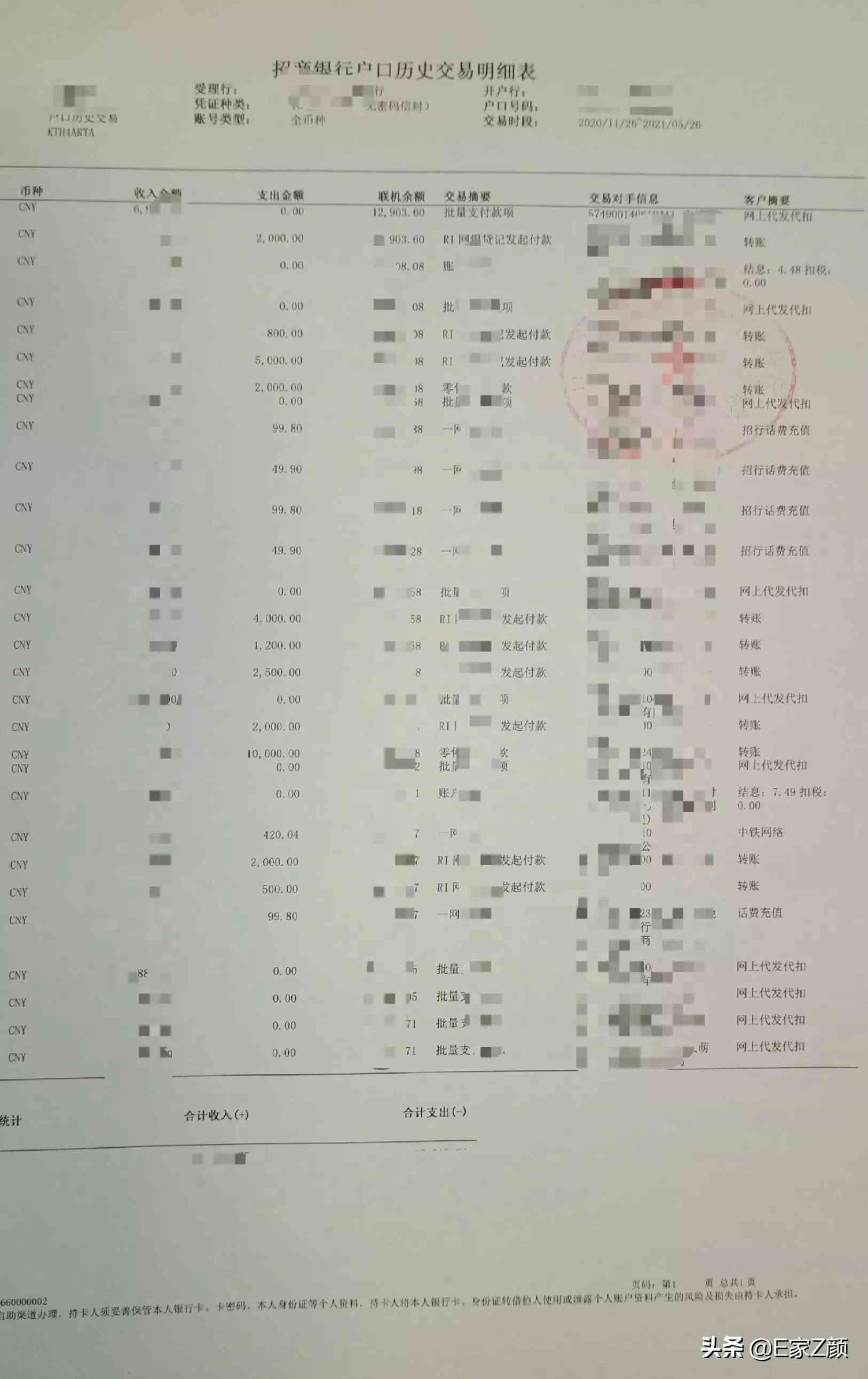 ⑧银行流水清单,常用的银行卡就可以,不限定哪家银行,尽量选择流水多的银行卡,这样可以多打印几张,好看一些。